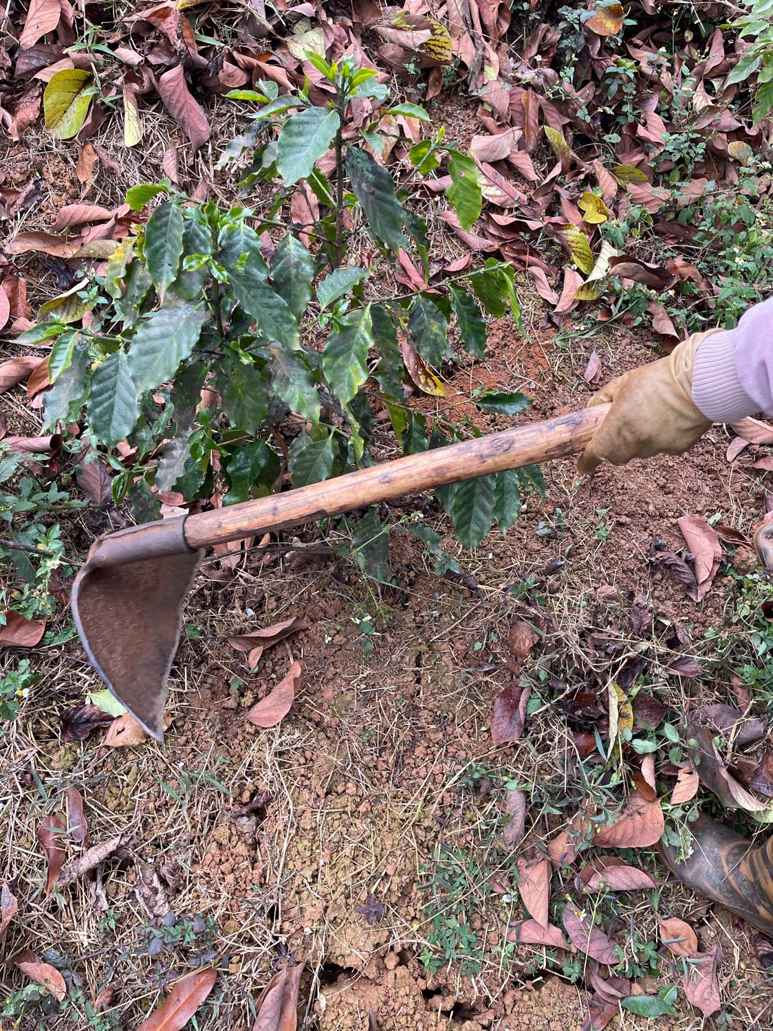 - Nhổ cỏ quanh gốc cây cà phê 3 nhân sự thoan, hưng, công
