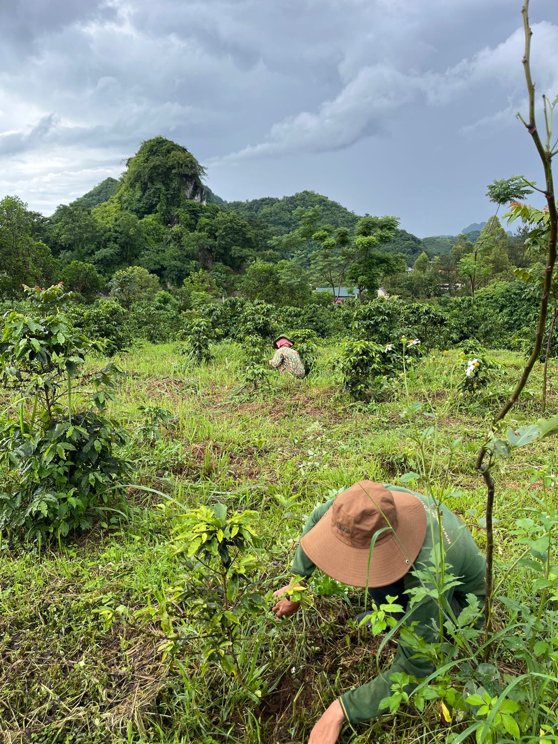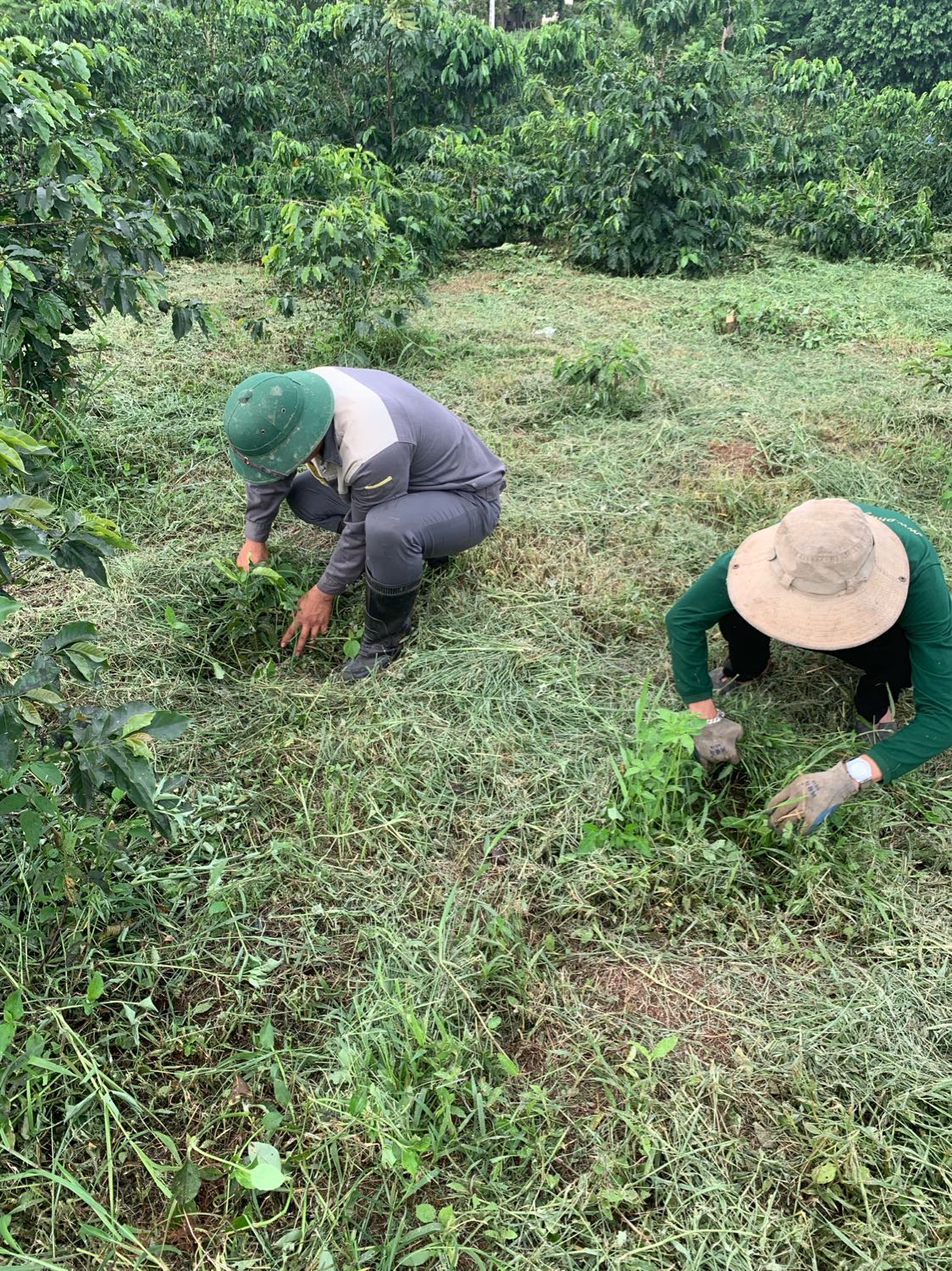 | 12 | Làm cỏ - 3 nhân sự nhổ cỏ quanh gốc lô 2 |