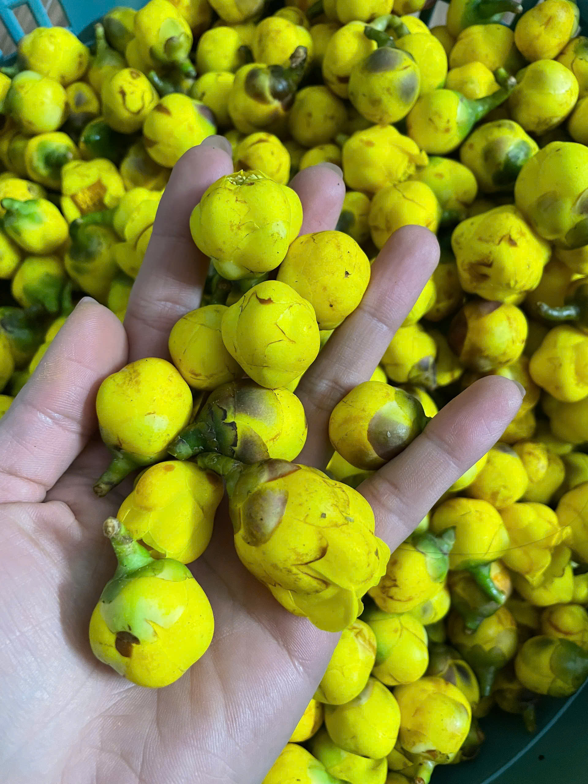| 11-01-2025 12:01:00 | Thu hoạch | Tiến hành thu hoạch hoa Trà Hoa Vàng. Thu hoạch hoa để chế biến và sử dụng Trà Hoa Vàng chủ yếu là thu hái ở giai đoạn nụ, cần phải chú ý hái đúng thời điểm nụ trà phát triển đạt kích thước lớn nhất, tức là hoa phải đạt độ "chín" nhưng phải đảm bảo hoa trà chưa bung nở, vẫn giữ nguyên được đài hoa nhằm đảm bảo được hàm lượng hoạt chất trong hoa là lớn nhất mang lại giá trị cao nhất. Sử dụng phương pháp thu hoạch thủ công bằng tay. Tổng khối lượng thu hoạch ngày 11/01/2025 là 6kg hoa tươi. Sau khi thu về được đựng trong thùng carton để hoa không bị bí hơi, mất màu và được sấy thăng hoa để bảo quản. Tại thời điểm trước và sau khu thu hoạch thời tiết thuận lợi, có nắng nhẹ, khô ráo, độ ẩm thấp 41%, nhiệt độ 9 - 20 độ. | Hoàn thành | |